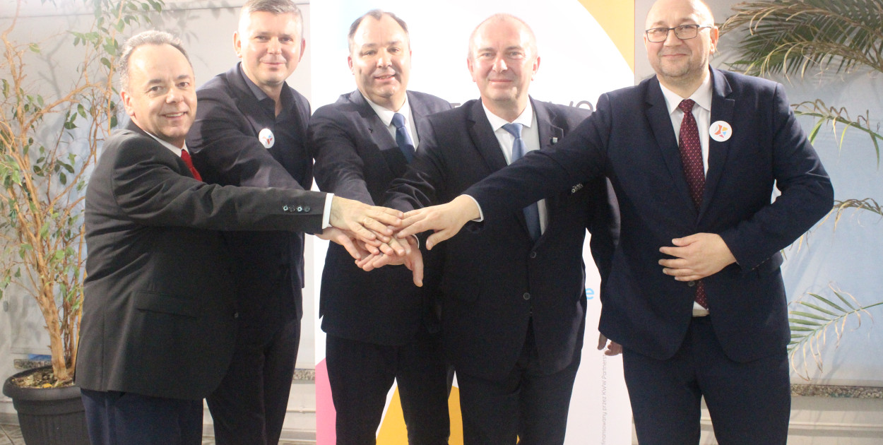 Na zdjęciu kandydaci na burmistrzów i wójta (od lewej): Artur Gasz (Zdzieszowice), Krzysztof Reinert (Gogolin), Tomasz Kłoś (Strzeleczki), Andrzej Kasiura (Krapkowice) i Rafał Miczka (Walce).