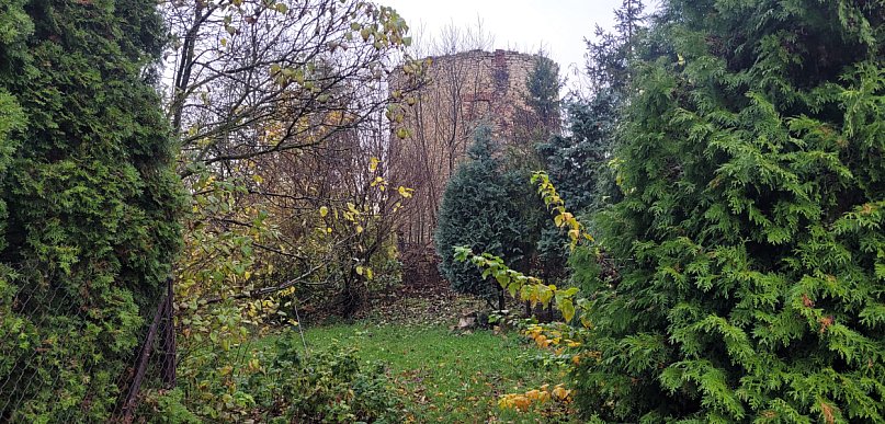 Choć ruiny wiatraka położone są w zielonym gąszczu dobrze widać je podczas jazdy gogolińską ulicą Ligonia.