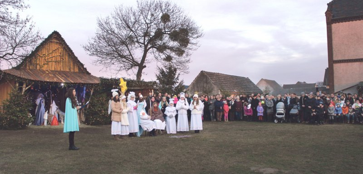 Dziedzice • W minioną niedzielę (27.12) już po raz trzeci odbyło się wspólne kolędowanie pod żywą szopką, którą mieszkańcy zbudowali na boisku przy przedszkolu. Spotkanie rozpoczęło się od przedstawienia o narodzeniu Jezusa, które zaprezentowały marianki z parafii pod wezwaniem św. Marii Magdaleny w Racławiczkach, przygotowane przez Teresę Kowolik. Oprawę muzyczną zapewniała orkiestra dęta ze Strzeleczek. O szczegółach wydarzenia opowiedziała nam Irena Liszka, sołtys Dziedzic.